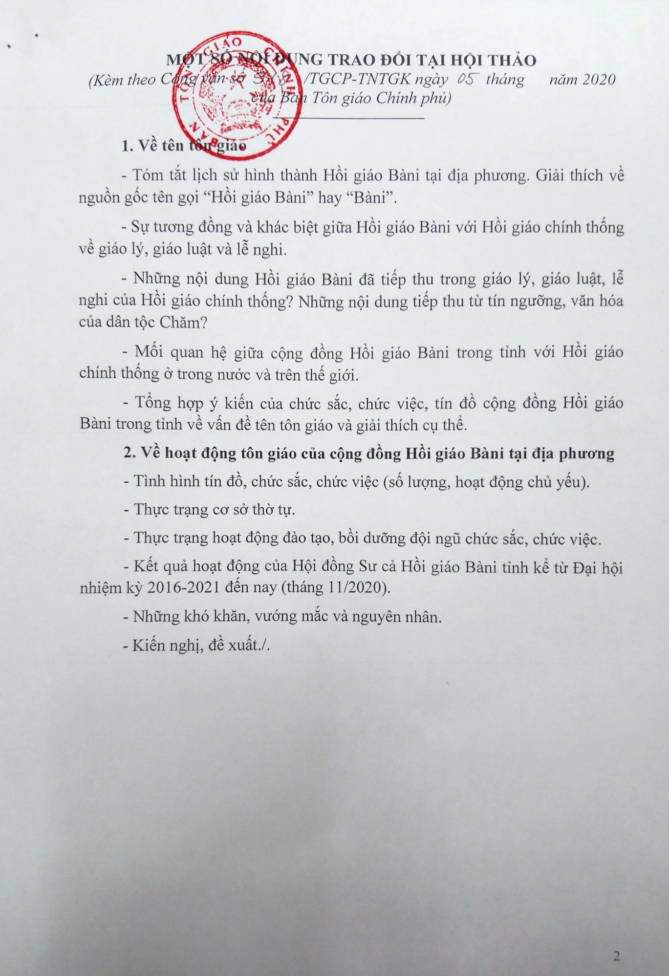 Hình 50. Nội dung Hội thảo của Ban Tôn giáo Chính phủ tại Phan Thiết ngày 13/11/2020.