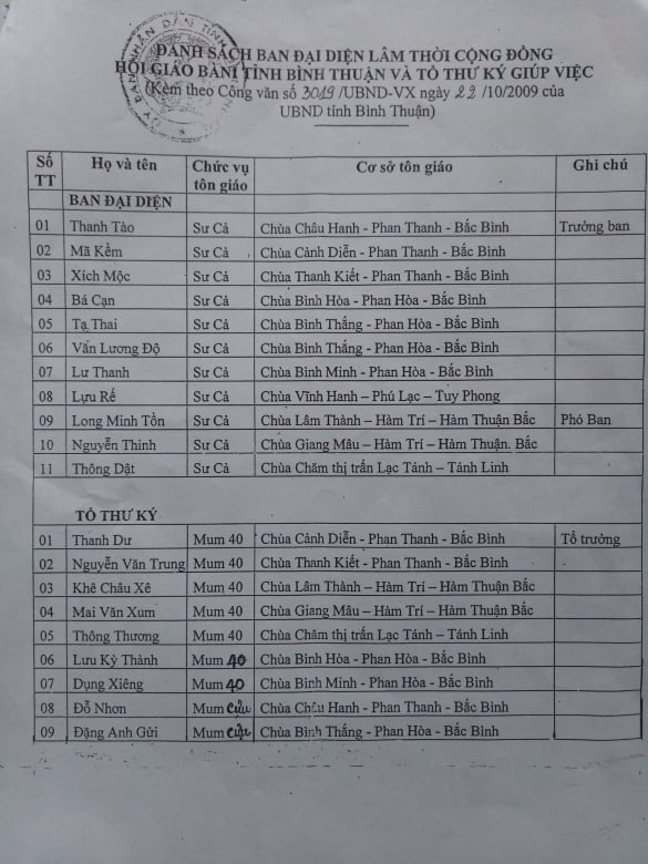 Hình 39. Danh sách Ban Đại diện lâm thời Cộng đồng Hồi giáo Bani tỉnh Bình Thuận theo Quyết định số: 3019/QĐ-UBND ngày 22 tháng 10 năm 2009.