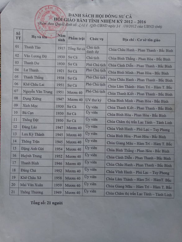 Hình 40. Danh sách Hội đồng Sư cả Hồi giáo Bani nhiệm kỳ: 2012-2016 theo Quyết định 2161/QĐ/UBND của tỉnh Bình Thuận ngày 31 tháng 10 năm 2012.
