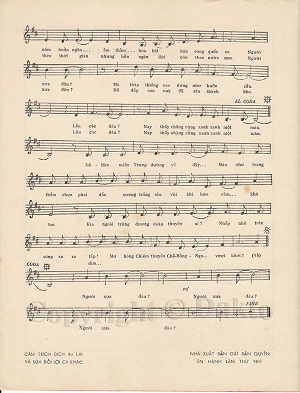 Nay người xưa đã không còn, mồ đắp cao cũng đã sâu thành hào, đứng ngẩng trông cảnh xưa nay chỉ thấy một màu hoang phế, người nay không thể tránh khỏi những ngậm ngùi. Cuối bài hát là tiếng kêu dài bi thương “Người xưa đâu…”, gợi lòng tiếc nhớ vô bờ.
