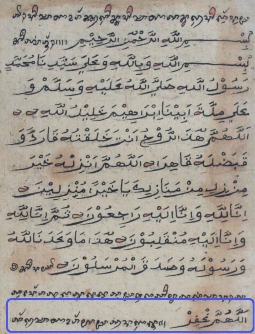 Sau đó đọc câu cầu nguyện sau đây (Trích từ Kinh sách Bani Awal, Hình 224 và Hình 225 đính kèm) với nội dung: