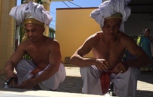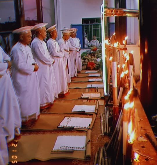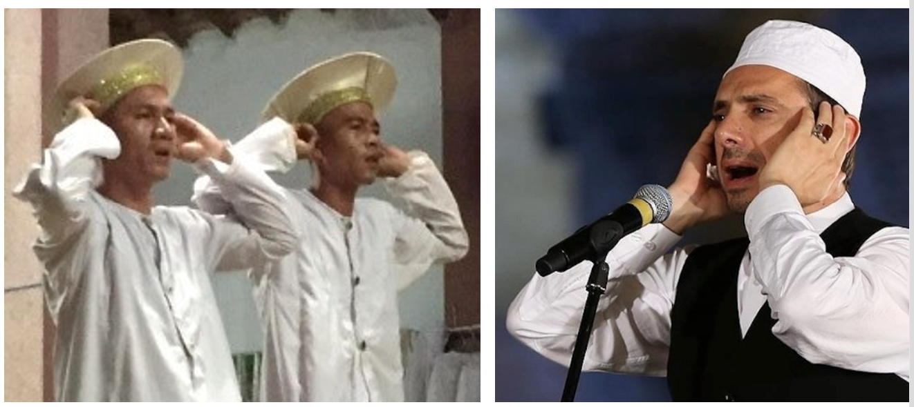 Hình 6. Giáo sĩ đang “bang” và “azan” thông báo giờ cầu nguyệnư giữa hệ phái Bani Awal và Bani Islam.