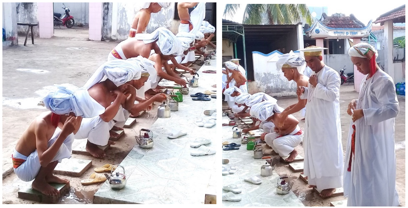 Hình 8. Định tâm khi tắm rửa chuẩn bị vào Thánh đường (Masjid, Magik) tháng Ramadan (Ramawan) của giáo sĩ hệ phái Awal.