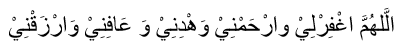 “Ollo hum magh fir ly, war ham ny, wah di ny, wa a' fi ny, war zaq ny, war fa' ny”.