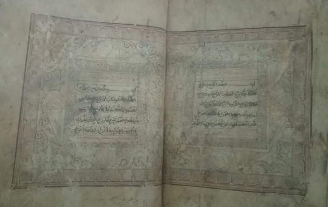 Hình 2a, 2b. Thiên kinh Koran chép tay của người Champa, được xác định vào thời kỳ đức vua Abdul Hamid Shah (Nik Mustapha - Po Rome). Quyển Thiên kinh đang trưng bày tại bảo tàng Thiên kinh Koran ở miền Nam Thái Lan.