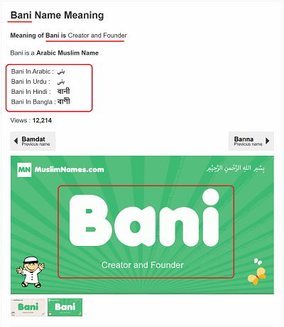 Theo thuật ngữ thì từ Bani có một số ngữ nghĩa như: