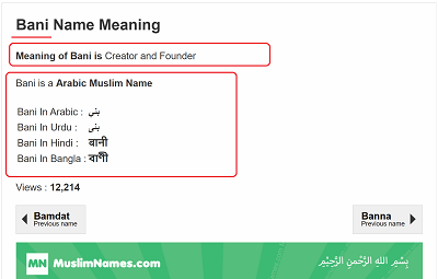 - Bani: trong tiếng Ả Rập dùng để chỉ tín đồ theo đạo thờ thượng đế Allah.