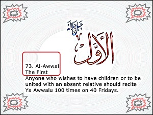Awal: tên thượng đế Allah, là thứ tự tên thứ 73 trong 99 tên của thượng đế Allah. Hình 15.