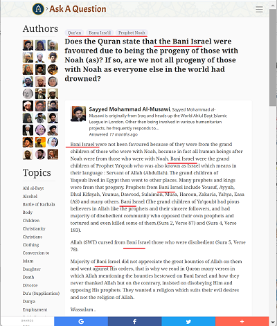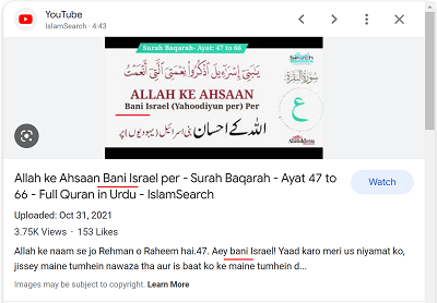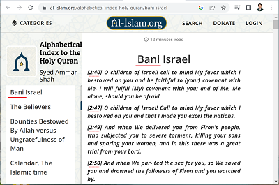 -Trong Thiên kinh Koran, surah Al-Baqarah câu 40 Allah phán gọi sắc dân Israel rằng: