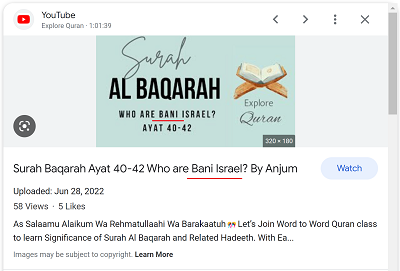 Hình 5. Trong Thiên kinh Koran, từ Bani và Bani Israel xuất hiện nhiều lần. Bani trong trường hợp này mang nghĩa sắc dân thờ Thượng đế, sắc dân của Đấng Tạo Hóa, sắc dân của tín đồ thờ phượng Allah.