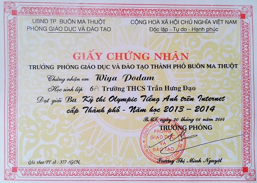 Hình 4. Wiya Podam, dân tộc Ede tại Buôn Ama Thuột. Tên không theo cấu trúc tiếng Việt.