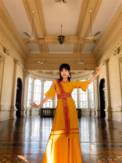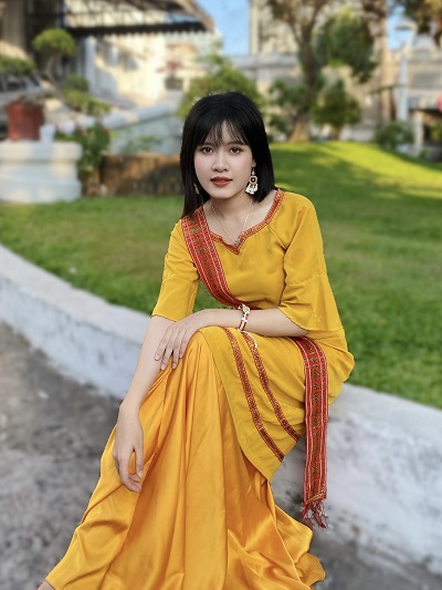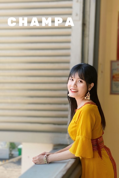 Trang phục em mặc là áo dài truyền thống của dân tộc Chăm, tượng trưng cho người phụ nữ Champa dịu dàng, chịu thương chịu khó. Tuy dịu dàng là thế, nhưng trong em vẫn luôn mạnh mẽ, luôn nỗ lực như cây Tagalau để dốc hết lòng vì dân tộc và Đất Nước.