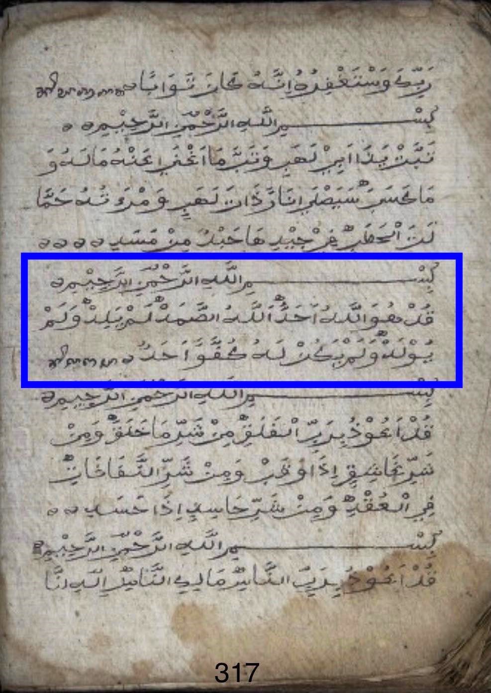 Hình 1, 2: Chương kinh "Kul La Huk" có trong Kinh sách Bani, thật ra là Surah "Al-Ikhlas" trong Thiên kinh Koran.