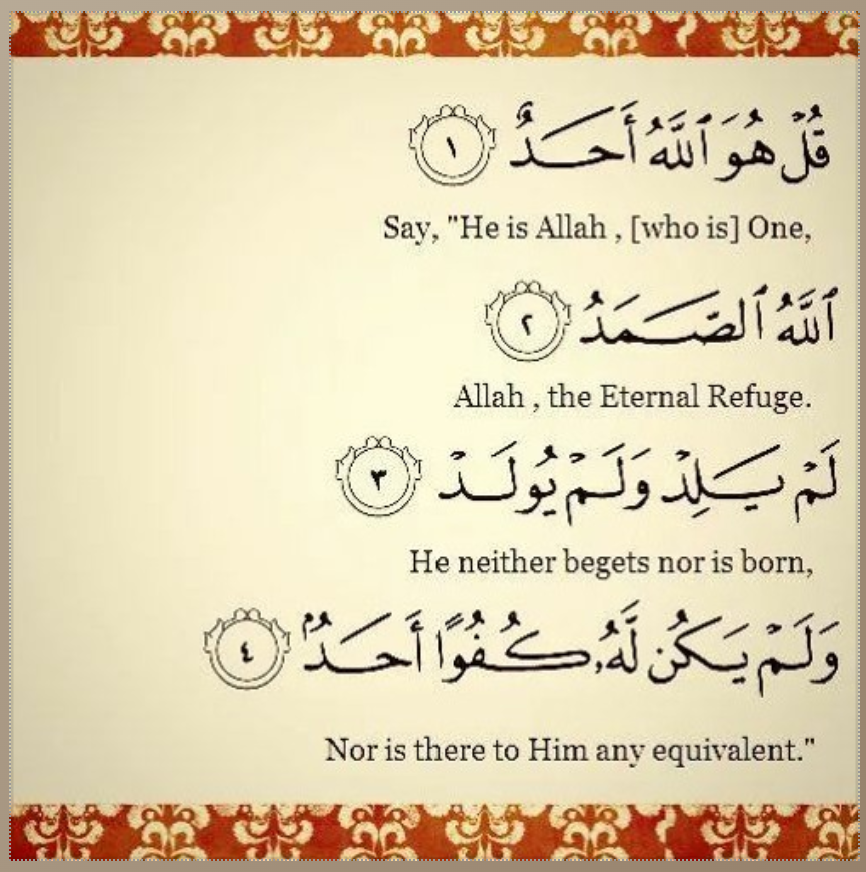1. Ý nghĩa của chương "Kul La Huk" hay Surah "Al-Ikhlas" trong kinh sách Bani là tiếng Ả Rập