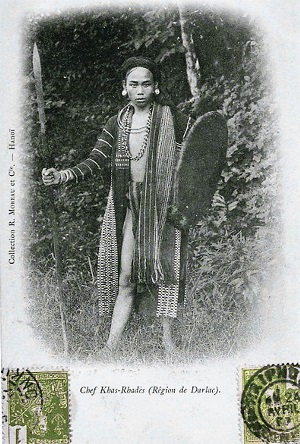 Một Tù Trưởng Rhadé ở Darlac, Cao Nguyên miền Trung. Bưu ảnh Đông Dương, thập niên đầu thế kỷ XX.