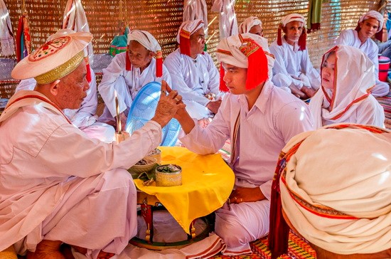 Hình 2. Tín đồ Awal (tầng lớp thứ 2 không phải Acar) phải đưa ngón trỏ lên tuyên thệ Shahadah trước Gru (Sư cả) và mọi người trong lễ cưới.