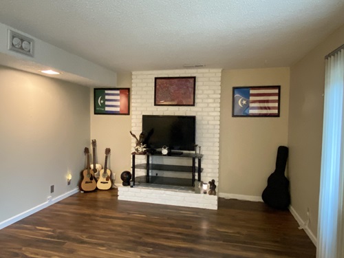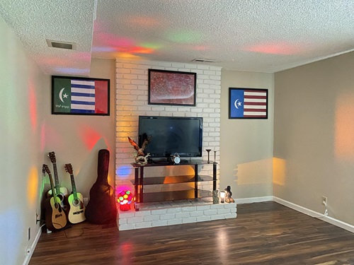 Hình 11. Hiệu kỳ Mặt trận 1 giải phóng Cao Nguyên Champa treo trước nhà Sàn Ede tại buôn Ako Dhong-Daklak. Ảnh chụp 2005 bởi Putra Podam.