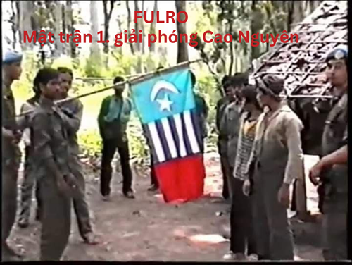 Hình 10. FULRO và Hiệu kỳ Mặt trận 1 giải phóng Cao Nguyên Champa tại biên giới Tây Nguyên-Campuchia. Ảnh: Fulro.