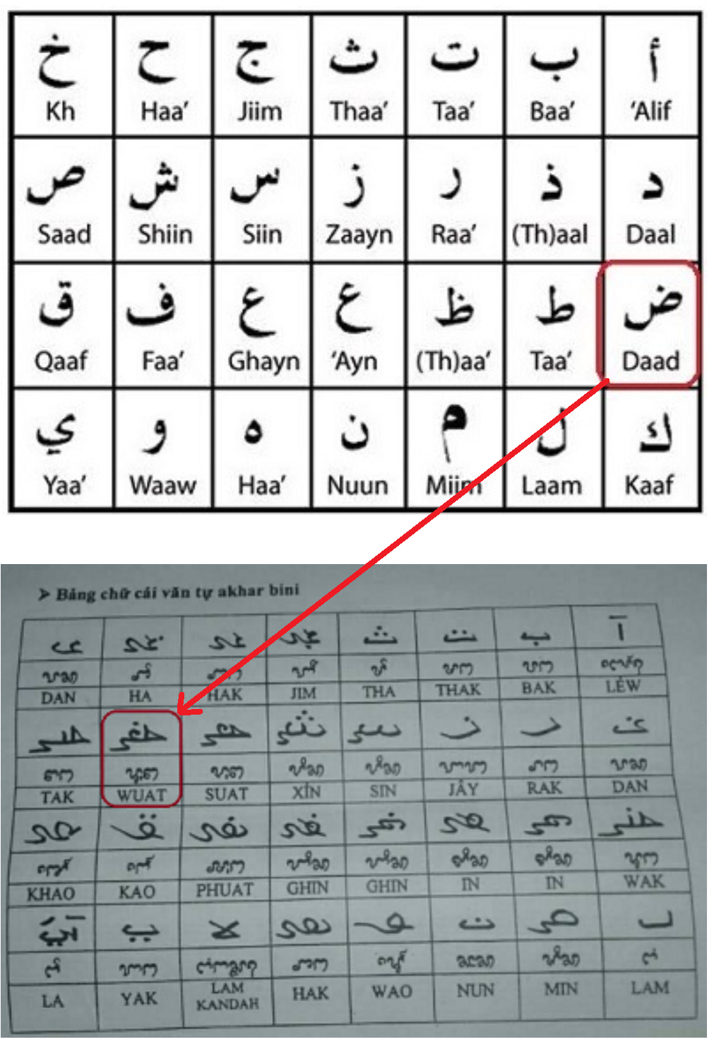 Hình 6. Chữ “Daad” của Ả Rập biến âm thành “Wuat”, do đó "Ramadan" viết thành "Ramawan"