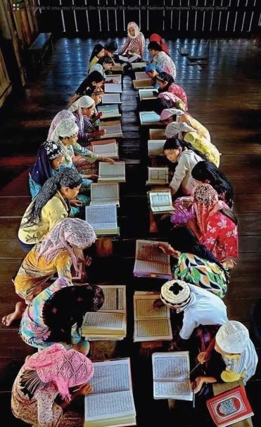 Hình 10. Tín đồ Bani Islam đang học chữ Jawi Chăm - Châu Giang. Ảnh: Sưu tầm.