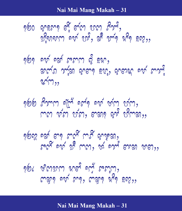 Trong tác phẩm “Nai mai mang Makah” nghĩa là “Nàng công chúa đến từ tiểu bang Kelantan-Malaysia” tác phẩm này dài đế 162 câu.