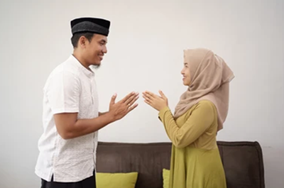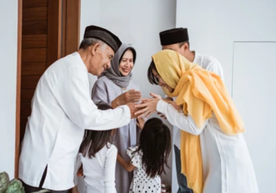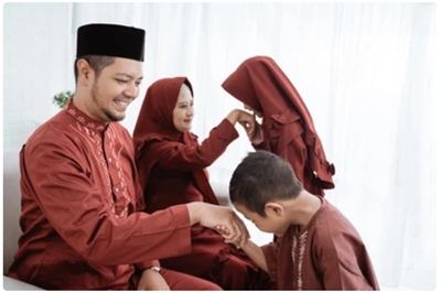 Hình 4. Người Melayu chào nhau thường nắm bàn tay của người lớn tuổi và nhẹ nhàng đặt lên trán hoặc hôn lên bàn tay.