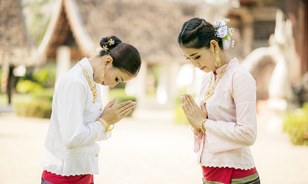 Hình 1. Người Thái chào cung kính theo nghi thức chắp tay cúi đầu.