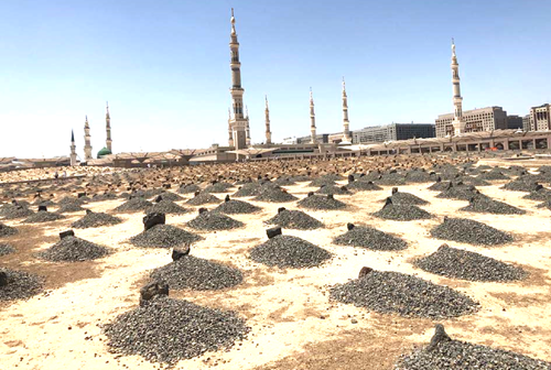 Hình 15, 16, 17. Những ngôi mộ Islam xưa bên cạnh Masjid al-Nabawi, Ả Rập Xe Út. Quan sát những ngôi mộ này thấy chỉ đặt một (1) viên đá Kut.
