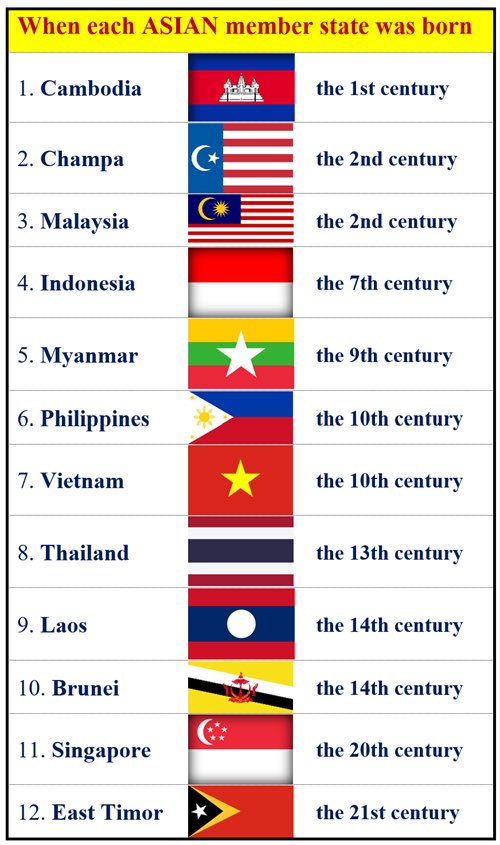 Hình 7. Năm độc lập và thời gian tồn tại trong lịch sử của một số nước Đông Nam Á.