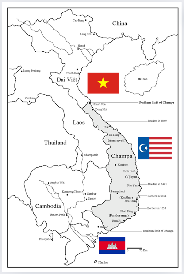 Hình 1. Danny Wong Tze Ken, The Nguyen and Champa during 17th and 18th Century: A Study of Nguyen Foreign Relations, Paris-San Jose: Champaka, Monograph 5, 2007, p.192. Bản đồ Việt Nam hiện đại gồm: Đại Việt, Champa và Khmer.