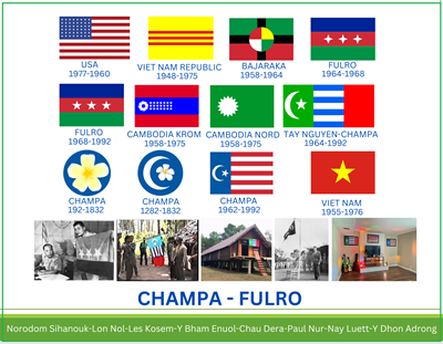 Hiệu kỳ “Mặt Trận Giải Phóng Champa” (khu vực Cao Nguyên và đồng bằng duyên hải từ Phú Yên đến Phan Thiết), tiếng Pháp (Front de Libération du Champa, FLC) tức FULRO Chăm do Les Kosem làm lãnh đạo. Trong đó có “Mặt Trận Giải Phóng Cao Nguyên” tiếng Pháp (Front de Libération des Hauts Plateaux, FLHP) tức FULRO Thượng do Y Bham Enuol lãnh đạo. Sau này hình thành “Mặt Trận Giải Phóng Cao Nguyên Champa”, còn gọi là “Mặt Trận Giải Phóng Dega-Chàm”.