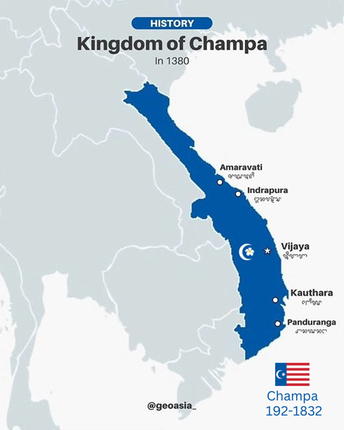 Hình 4. Bản đồ Champa thời vua Jaya varman (Chế Bồng Nga) năm (1360 -1390), bốn lần đánh chiếm Thăng Long.