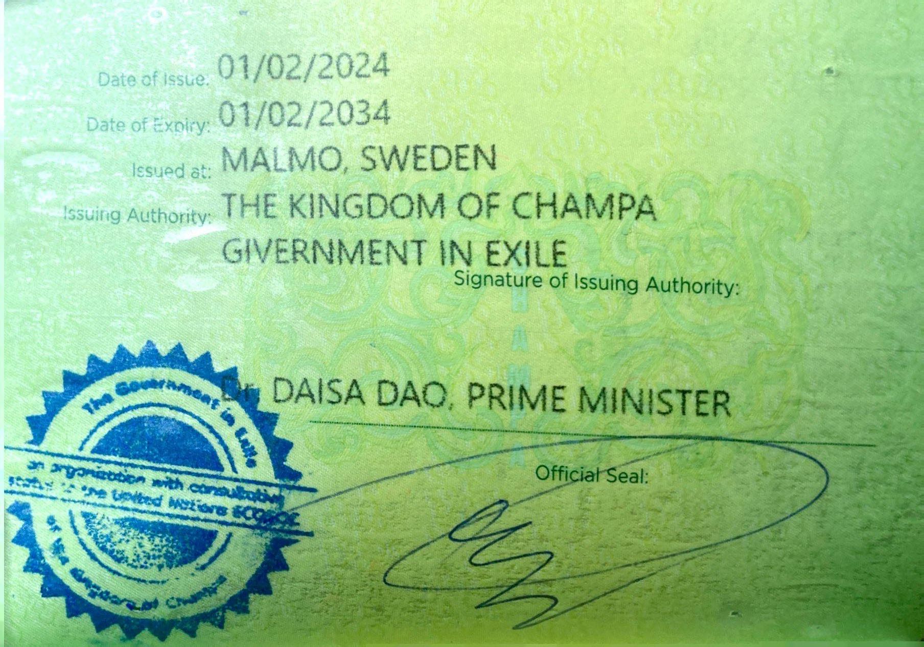 Hình 1. Hồ sơ Lượng Hữu Phú trong giấy hộ chiếu do Thành Thanh Dải cấp.