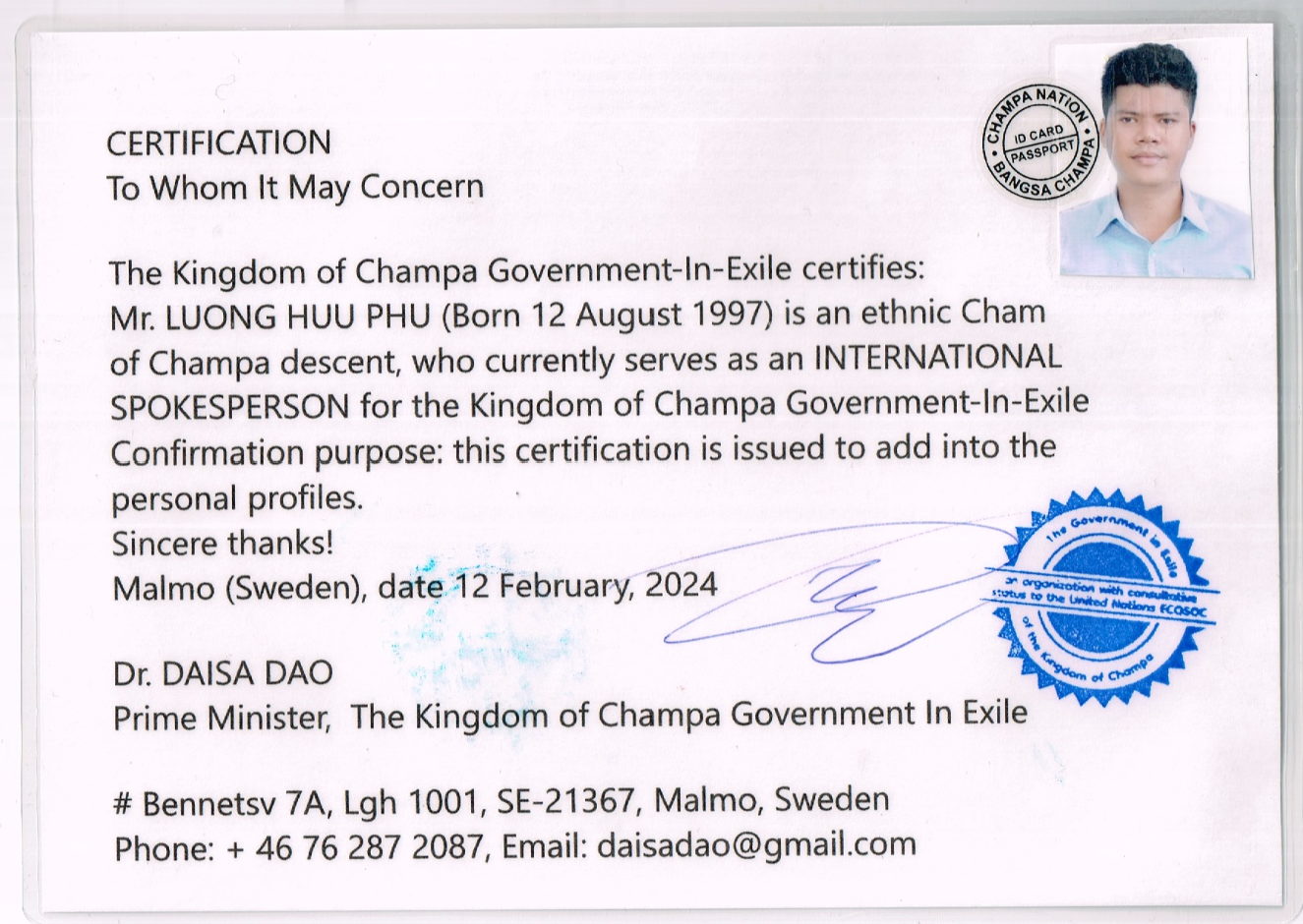 Đằng này Lương Hữu Phú không biết gì hết, không những chỉ muốn tạo tai tiếng bằng cách xuyên tạc, lừa bịp cộng đồng Chăm mà còn to gan lớn mật tìm cách lừa bịp Chính phủ nước Úc, Hạ Viện nước Úc bằng cách gửi thư kiến nghị tố cáo Chính phủ Việt Nam nhưng không dám công khai bức thư kiến nghị.