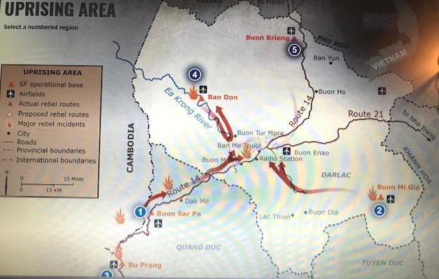 Hình 4. Bản đồ hướng tiến quân của lực lượng Fulro của cuộc nổi dậy 20/9/1964. Ảnh: Sưu tầm.