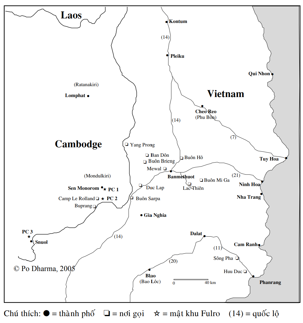 Hình 2. Bản đồ Darlac cuộc nổi dậy đúng 1 giờ sáng ngày 20 tháng 9 năm 1964 tại Ban Mê Thuột, Mặt Trận Giải Phóng Champa-Fulro bắn tia đạn đầu tiên nhằm báo hiệu sự vùng dậy của tổ chức này trên toàn khu vực cao nguyên miền trung Việt Nam. Ảnh: Sưu tầm.