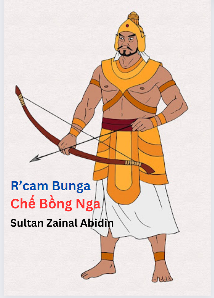Hình 2. Chế Bồng Nga, vị vua đầu tiên triều đại Islam quốc giáo tại Vijaya-Degar. Hồi giáo là Quốc giáo đầu tiên ở Vijaya-Champa tại Đông Nam Á vào thế kỷ 14. Jaya varman (Chế Bồng Nga), trị vì (1360 -1390), là vị vua Champa (Raja-di-raja) theo tôn giáo Islam (Hồi giáo), Sắc tộc: Raday (Rhade, Jarai), sinh ra tại Vijaya-Champa và qua đời năm 1390 tại Vijaya-Champa. Hoàng hậu là Siti Zubaidah (người Islam tại Kelantan-Malaysia). Hậu duệ là Chế Ma Nô Đà Nan, Chế San Nô, và công chúa Puteri Amina. Thân phụ là vua Jaya Ananda (Chế Anan). Theo cách gọi của tộc người Rhade và Jarai tại vùng Vijaya-Degar là R'čam B'nga hay R'cam Bunga [Jaya R'cam B'nga] (Anak Campa Bunga), khi kết hôn với công chúa Siti Zubaidah người Hồi giáo thuộc tiểu bang Kelantan-Malaysia, ngài mang niên hiệu là: Sultan Zainal Abidin. Theo Đại Việt Sử Ký Toàn Thư trong tài liệu Trung Hoa ngài có tên: Ngo-ta-Ngo-che là tên hiệu của vua thứ ba thuộc vương triều thứ 12 Vijaya.