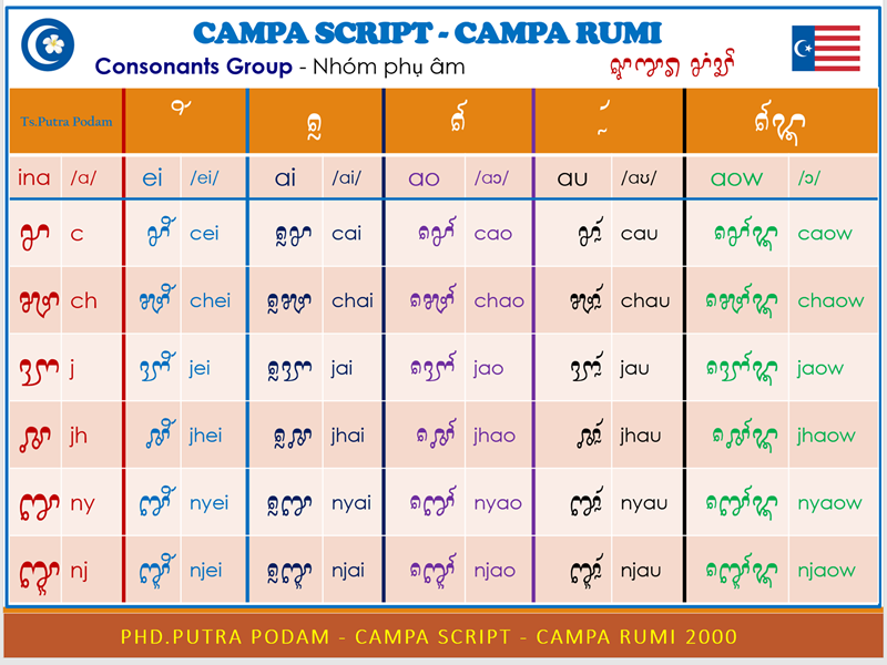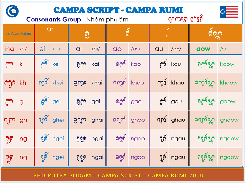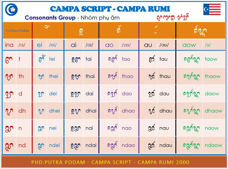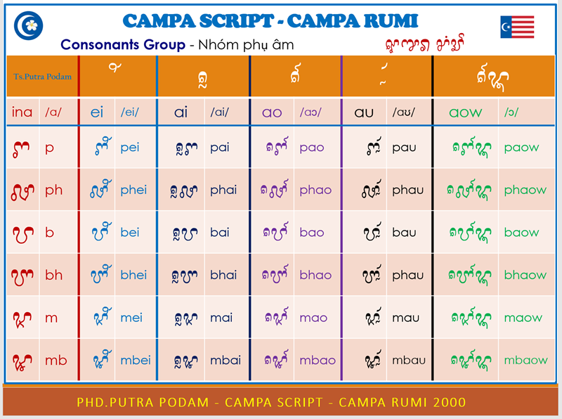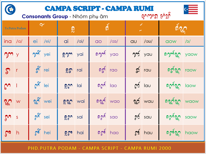 Rumi Campa của Ts.Putra Podam, một số ký tự trong hệ thống được thay đổi như sau: