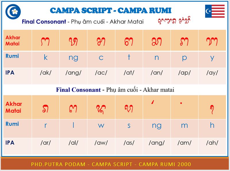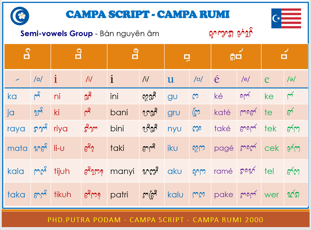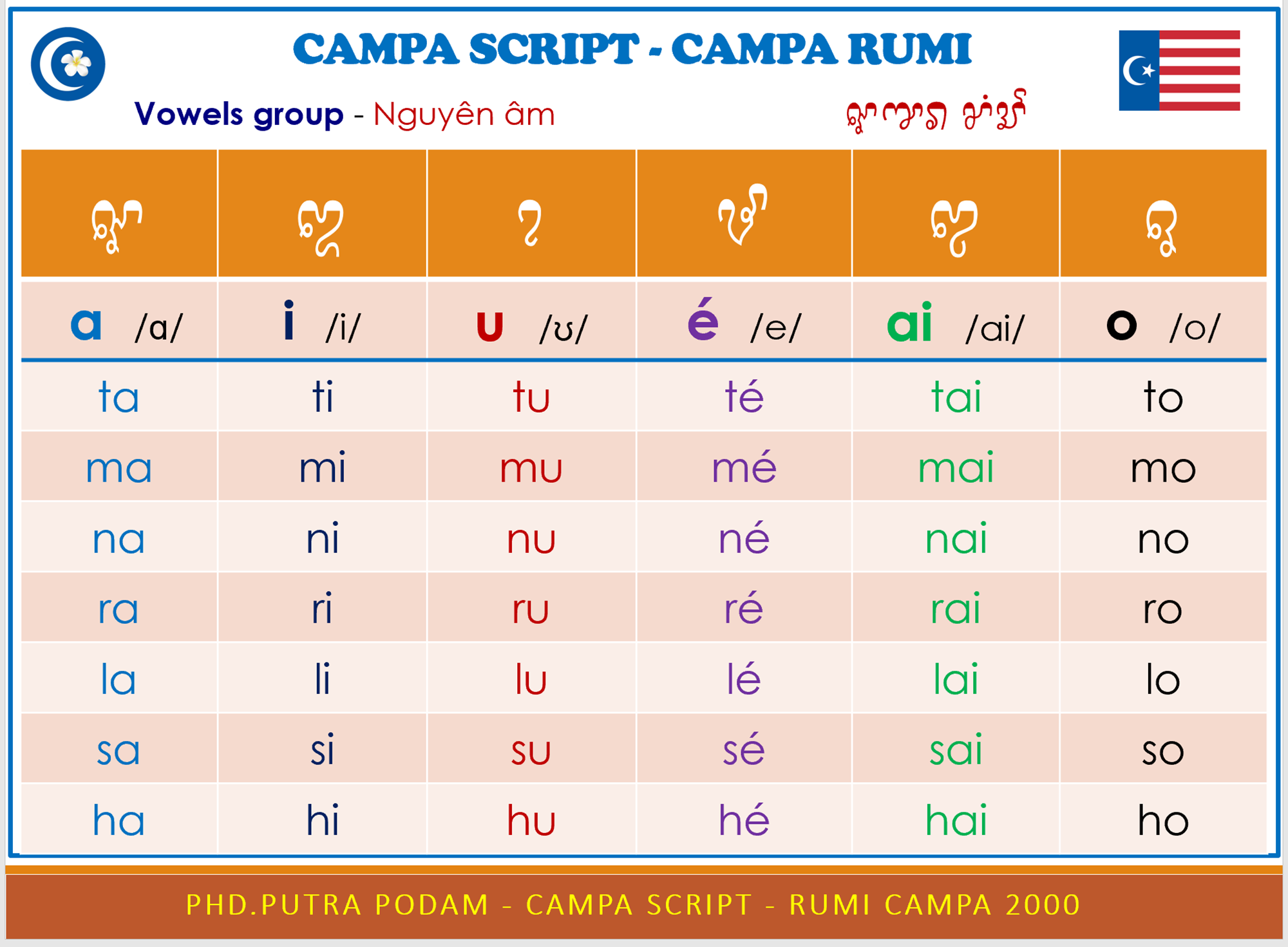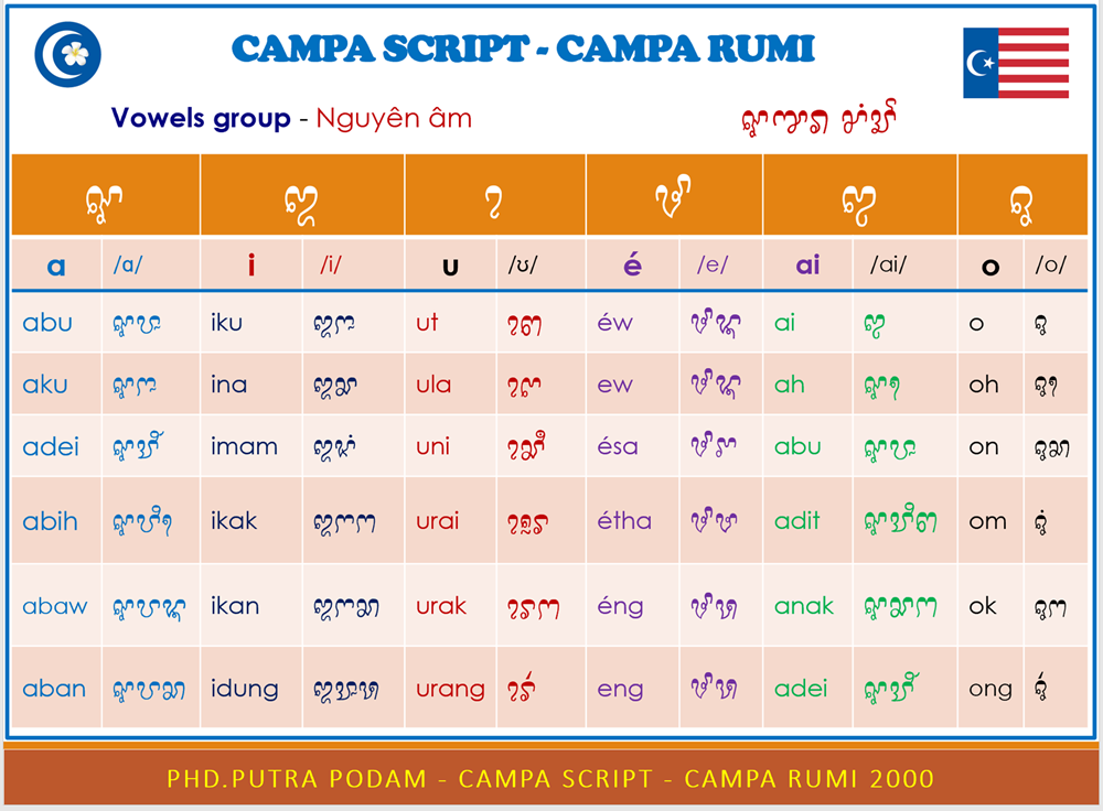 Rumi Campa 2000 (bản phiên âm), Ts.Putra Podam đã báo cáo tại hội thảo quốc tế. “Design the Rumi Campa system through the Rumi EFEO system”. The 5th International Conference on Posgraduate Education (ICPE-5 2012). Malaysia, 18-19 December, 2012.