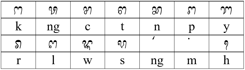 Bảng 3. Phụ âm cuối trong Akhar Thrah Cham gồm 14 ký tự đều không mang âm /a/.