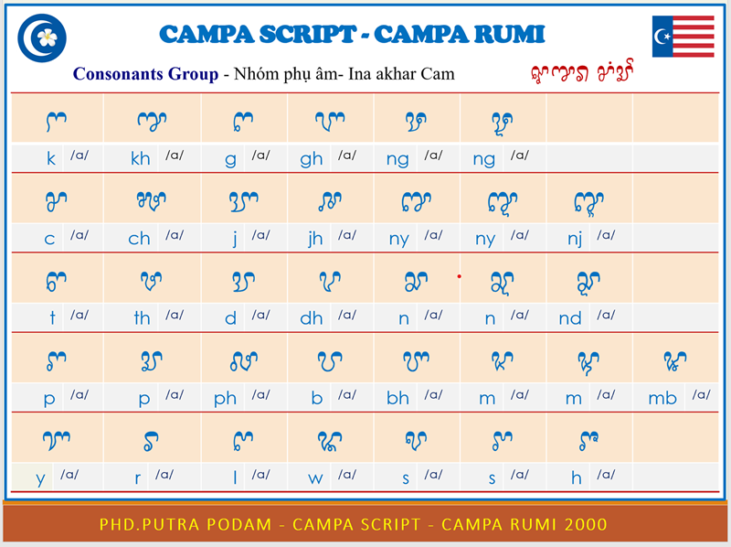 Tham khảo 3. Nhóm phụ âm Akhar Thrah Cham gồm 35 ký tự.