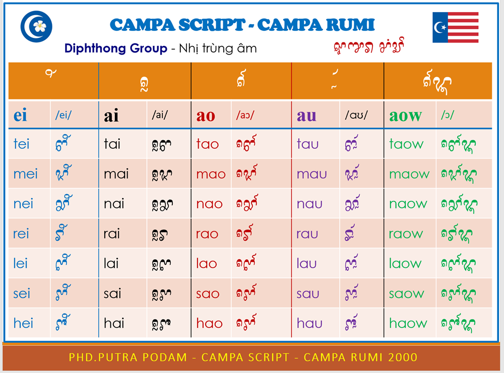 Tham khảo 6: Nhị trùng âm trong hệ thống chữ viết Cham.