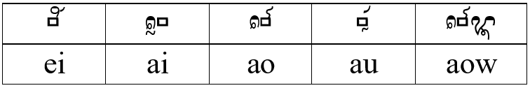 Bảng 5. Nhị trùng âm trong hệ thống chữ viết Akhar Thrah Cham gồm 5 nhị trùng âm.