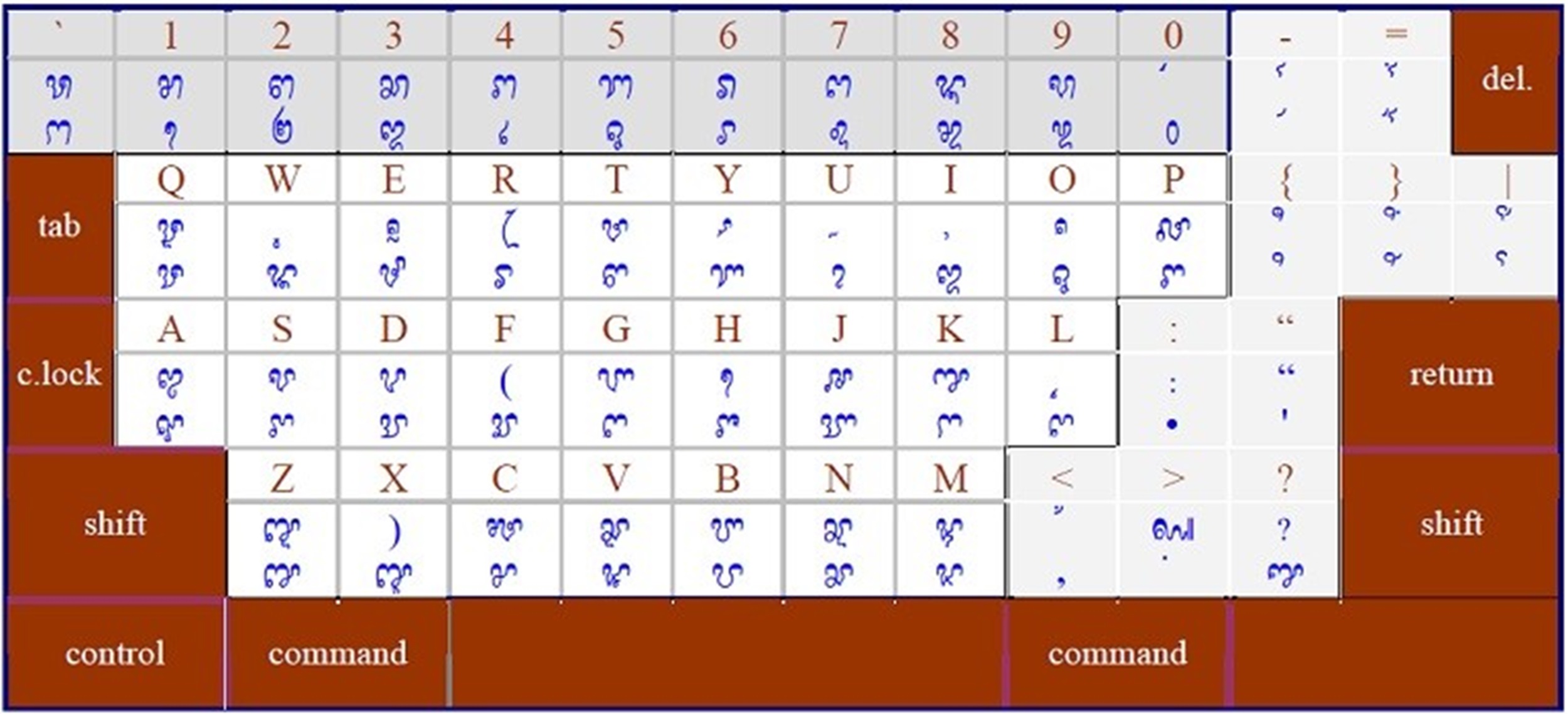 Bàn phím gõ 4 font: Cham Thrah, EFEO Panrang, EFEO Parik, EFEO Udong