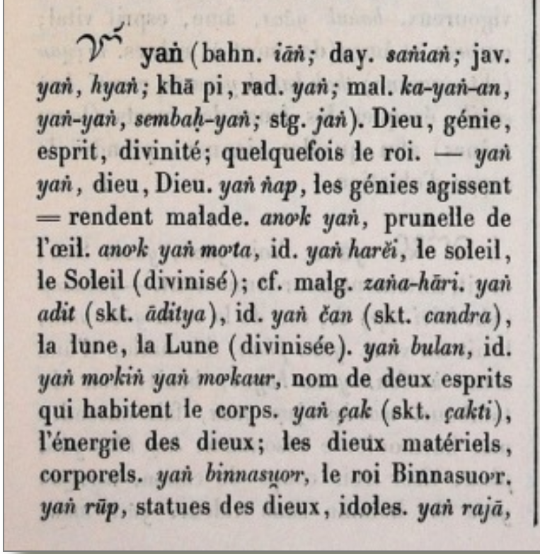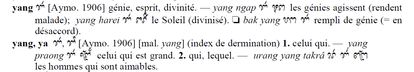 Hình 4. Từ “Yang” trong tự điển Cabaton, Antoine; Aymonier, Etienne 1906 [accessed: 2024/9/28]. "références bibliographiques" (Object Id: 10661). In Dictionnaire Cam-Français, E. Aymonier et A. Cabaton. ODSAS: https://www.odsas.net/object/10661.