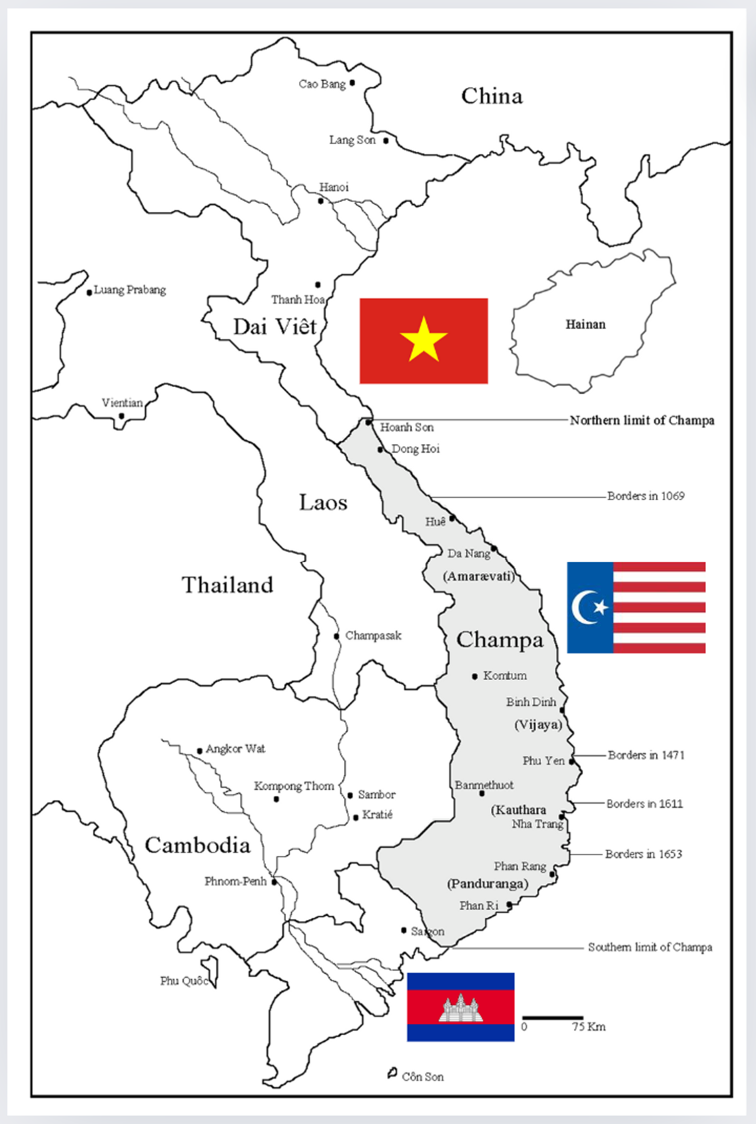 Hình 4. Danny Wong Tze Ken, The Nguyen and Champa during 17th and 18th Century: A Study of Nguyen Foreign Relations, Paris-San Jose: Champaka, Monograph 5, 2007, p.192. Bản đồ Việt Nam hiện đại gồm: Đại Việt, Champa và Khmer.