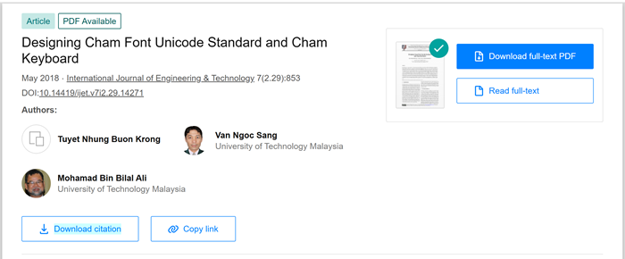 Hình 32. Journal full paper Designing Cham font Unicode Standard and Cham keyboard: Read full-text