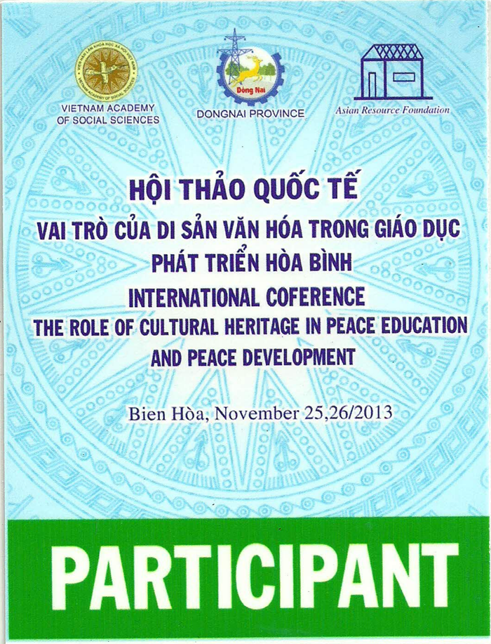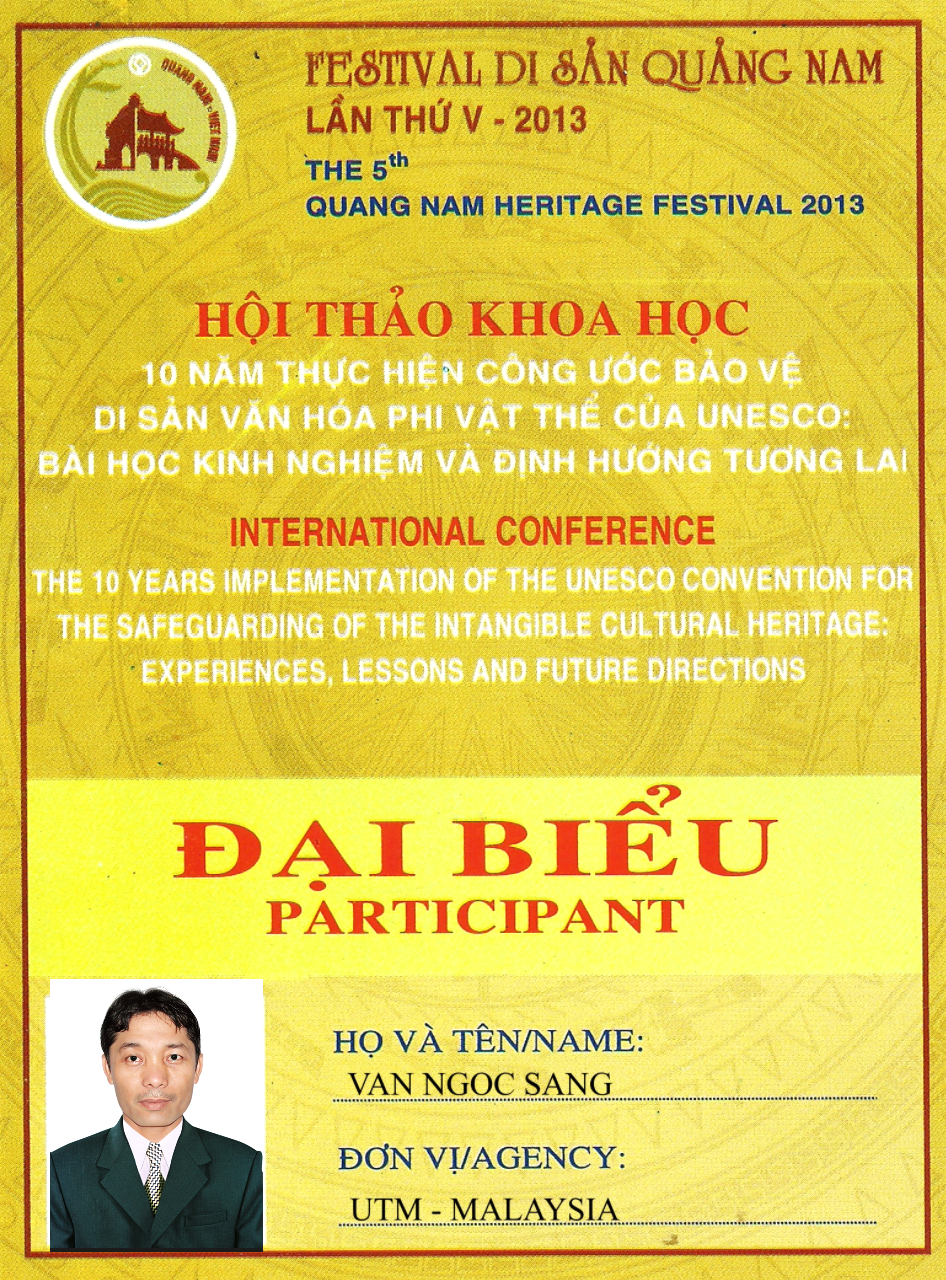 Hình 43. Van Ngoc Sang (Budi - Putra Podam), Thẻ tham gia: International Conference on “The 10-Year Implementation of the UNESCO Convention for the Safeguarding of Intangible Cultural Heritage: Experiences, Lessons and Future Directions”. Viet Nam, June 22-23, 2013.