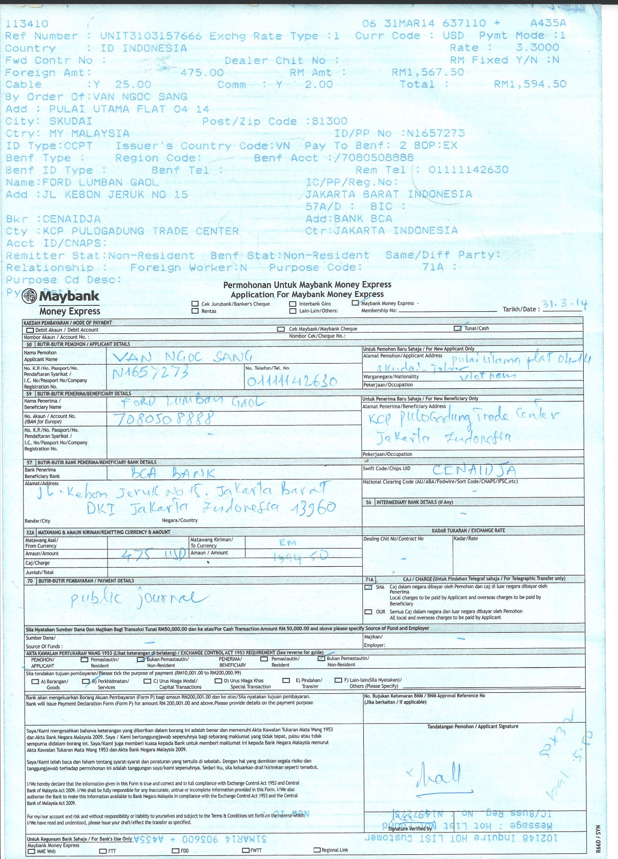 Payment for Journal: Proof of Payment for Journal