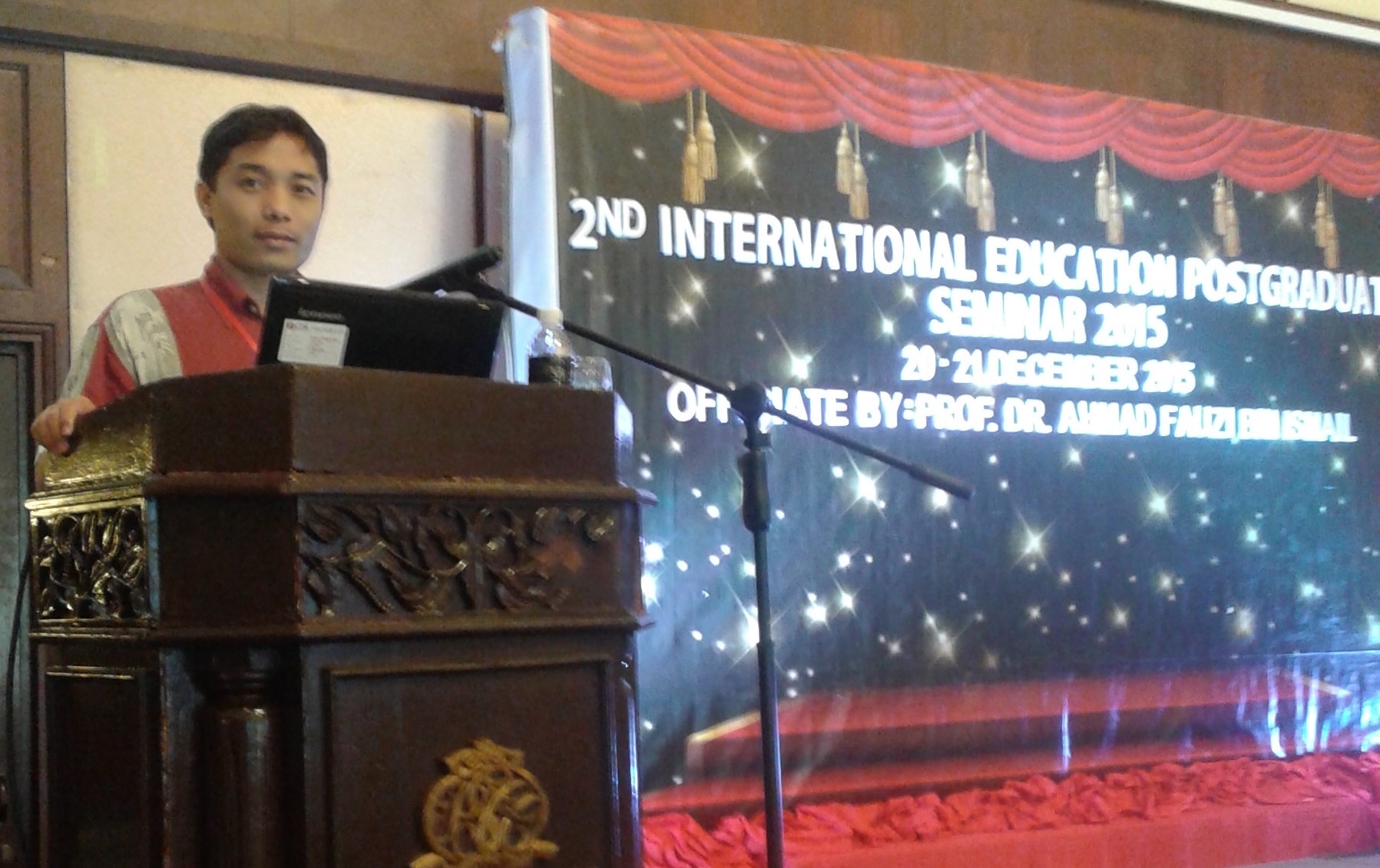 Hình 12. Van Ngoc Sang (Budi - Putra Podam), presentation journal of "Study of Machine Translation to Build Pattern-based Model for Vietnamese – Cham". The 2nd International Education Postgraduate Seminar (IEPS2015). On Inspiring Young Researchers. Universiti Teknologi Malaysia (UTM). Malaysia, 20-21, December 2015.